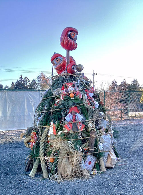 きずなでは、長年地域の行事に参加したり共催したりして協力関係を築いています。「どんど焼き」もその一つで、正月飾りなどを持ち寄って焚き上げ無病息災を願う年中行事として、毎年成人の日に行われています。普段たき火などを見ることがなくなった時代に、3メートルほどもある炎と熱を感じられる貴重な機会でもあります。