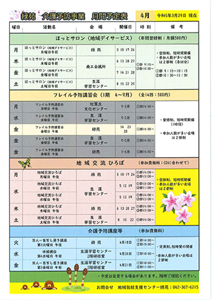 緑苑 4月介護予防事業のご案内