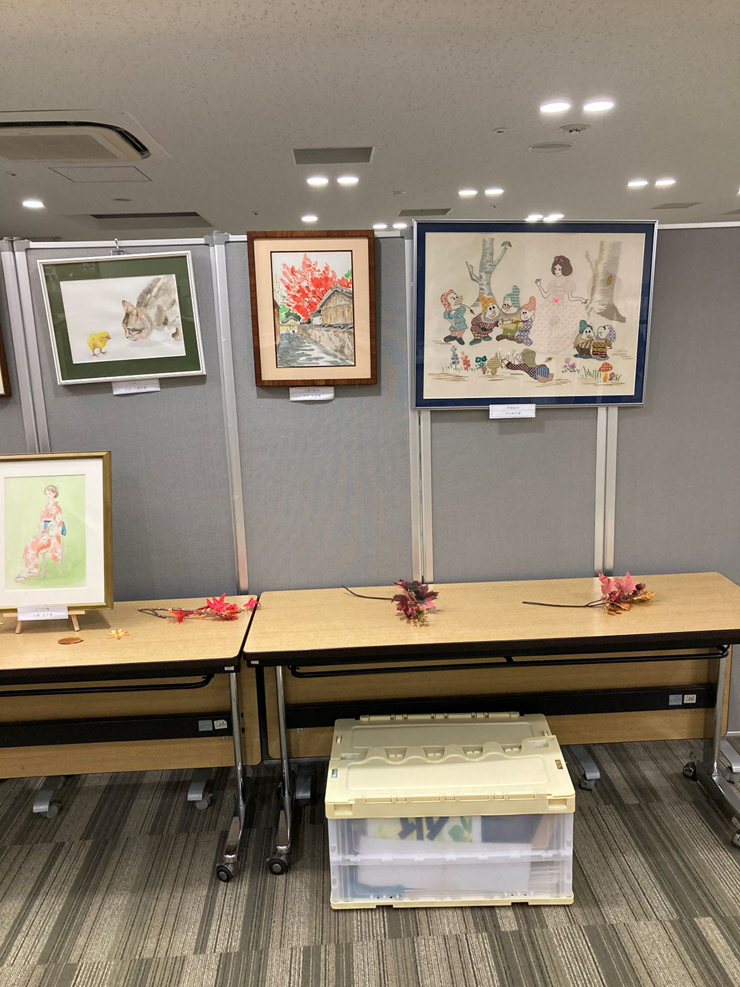 ゆりの会さんからは、個人で作成した“水彩画”や“刺繡絵画”、活動内で作成したさくらほりきりのキットを使用した“柴犬の押し絵”をご提供いただきました。