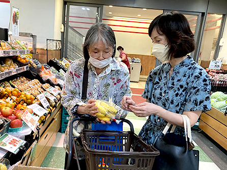 大きめのスーパーへお車で送迎し、ボランティアさんとともにお買い物を楽しんでいただきました。