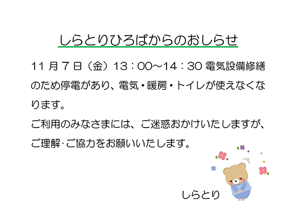 しらとりひろばから停電のおしらせ